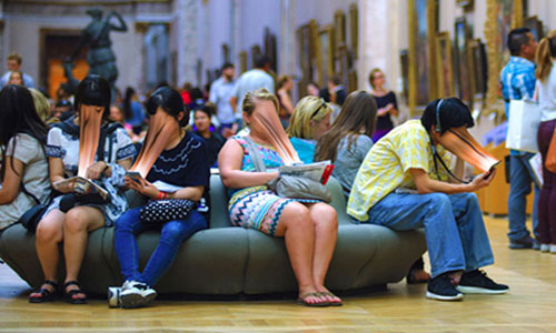 在信息時代,越來越多的人患上了手機(jī)上癮癥,變身低頭族。法國20歲攝影師安東尼·蓋革創(chuàng)造了一系列詭異照片,將手機(jī)變成了《哈利波特》中的“攝魂怪”,吸食著人們的靈魂。安東尼的這組作品將人臉和屏幕連在一起,看起來如同人臉被吸入了手機(jī)屏幕。
